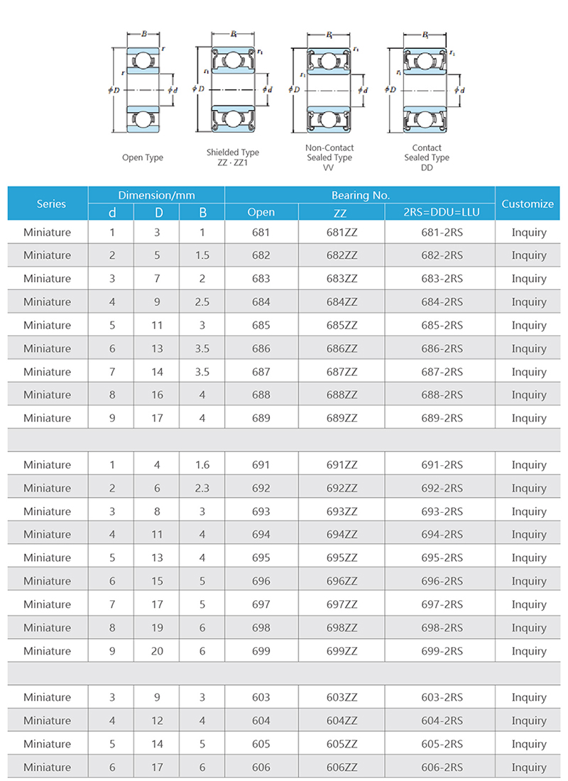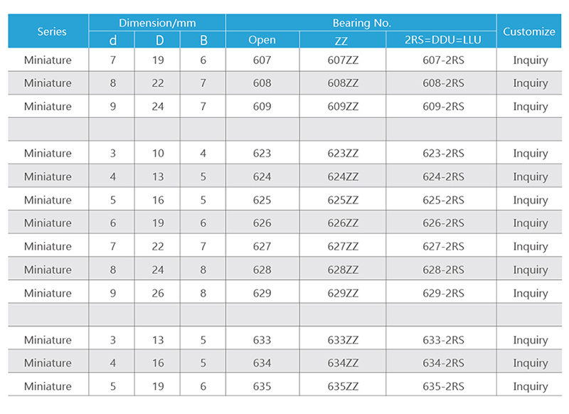 Miniature ball bearing refers to the type with a diameter of less than 26mm; it shares the common characteristics of deep groove ball bearings—high speed and easy installation, and can withstand radial load and two-way axial load.
